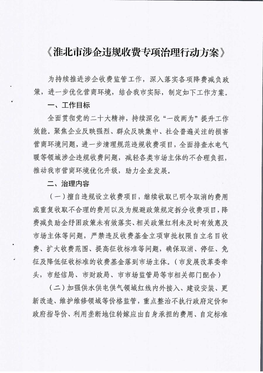關于印發《淮北市涉企違規收費專項治理行動方案》的通知 淮發改價費【2023】61號