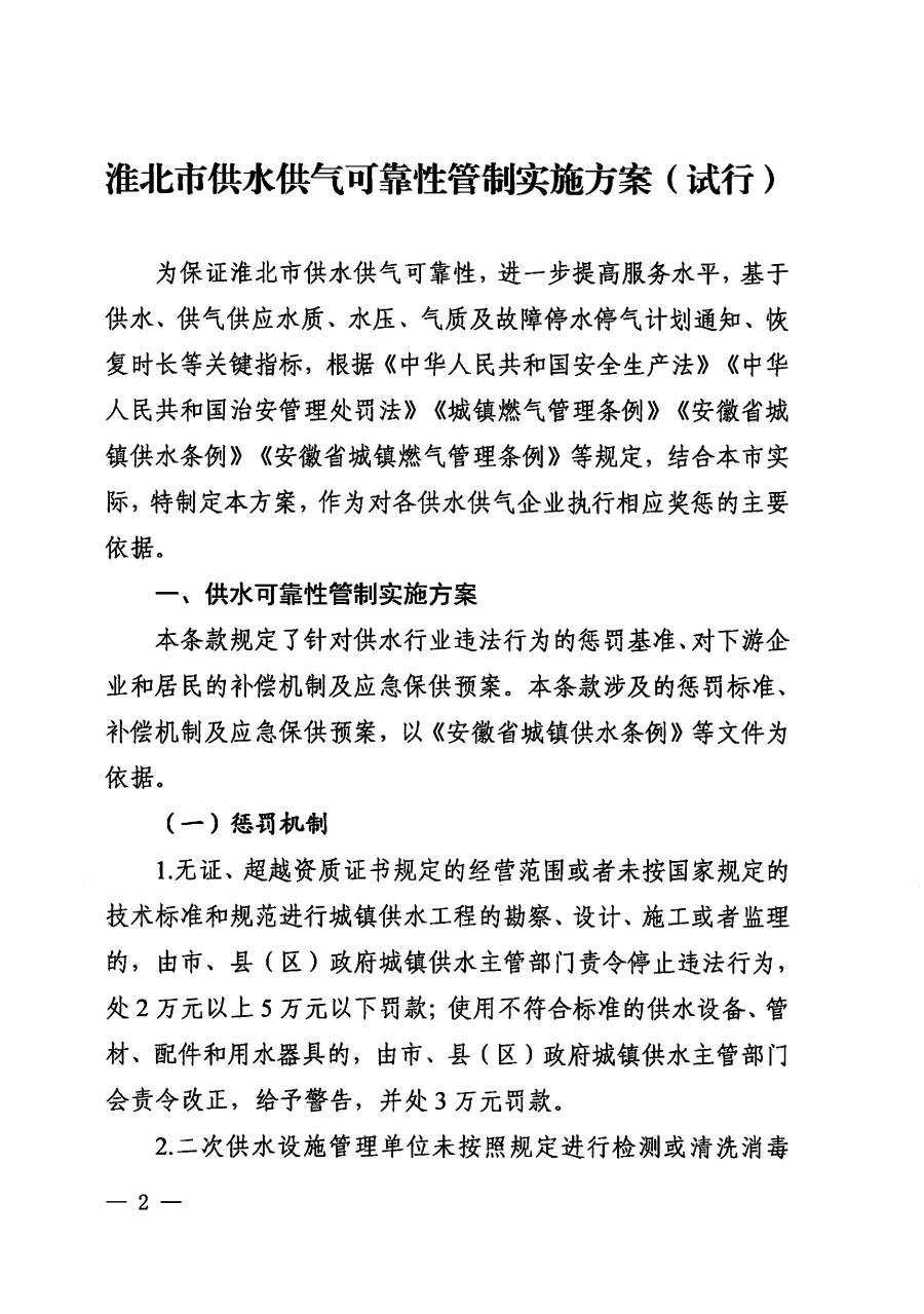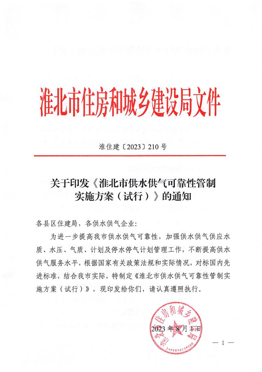 關于印發《淮北市供水供氣可靠性管制實施方案(試行)》的通知