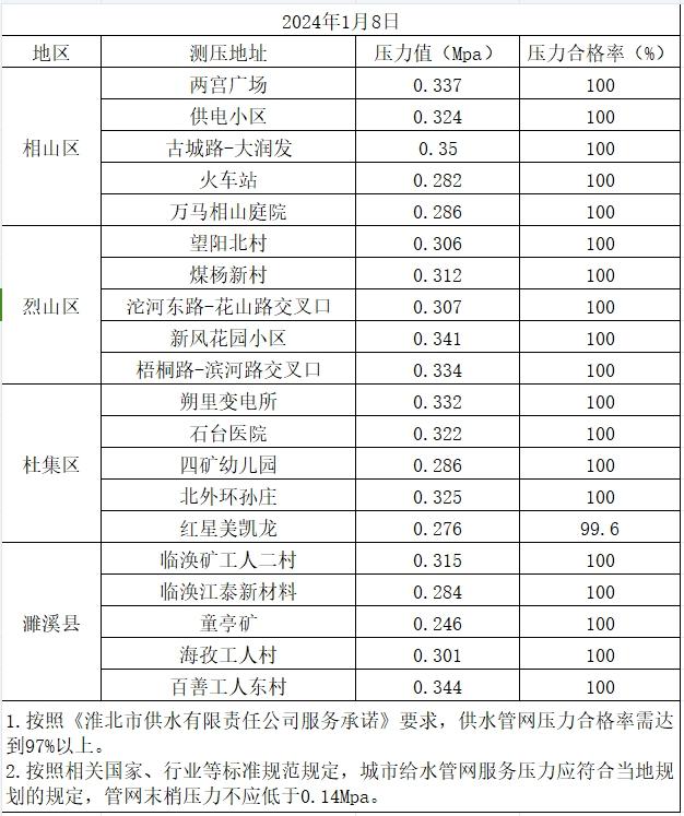 2024年1月8日水壓信息公開