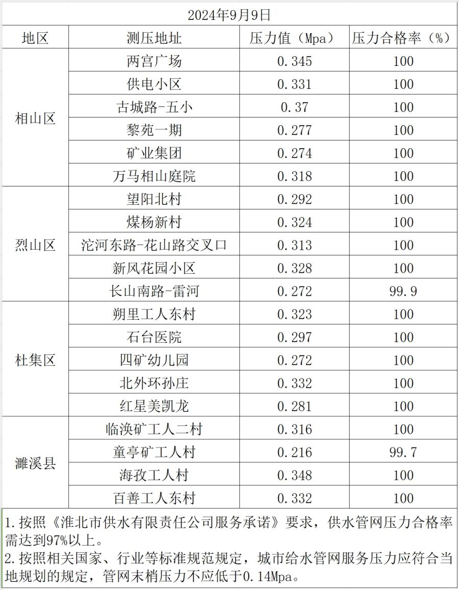 2024年9月9日水壓抽測公示