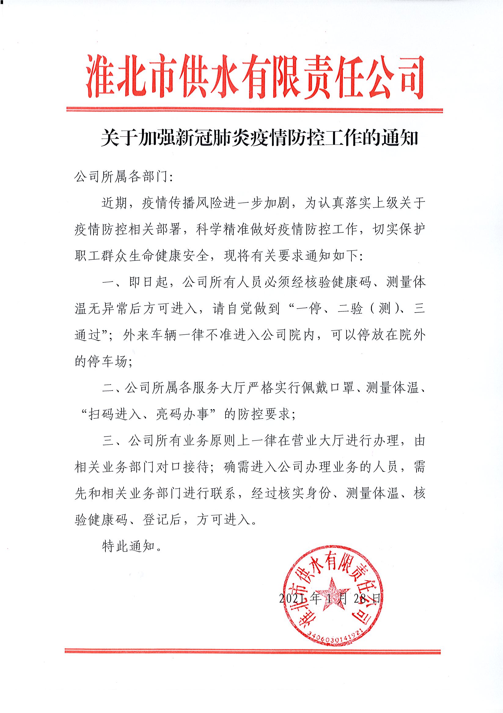 市供水公司關于加強新冠肺炎疫情防控工作的通知